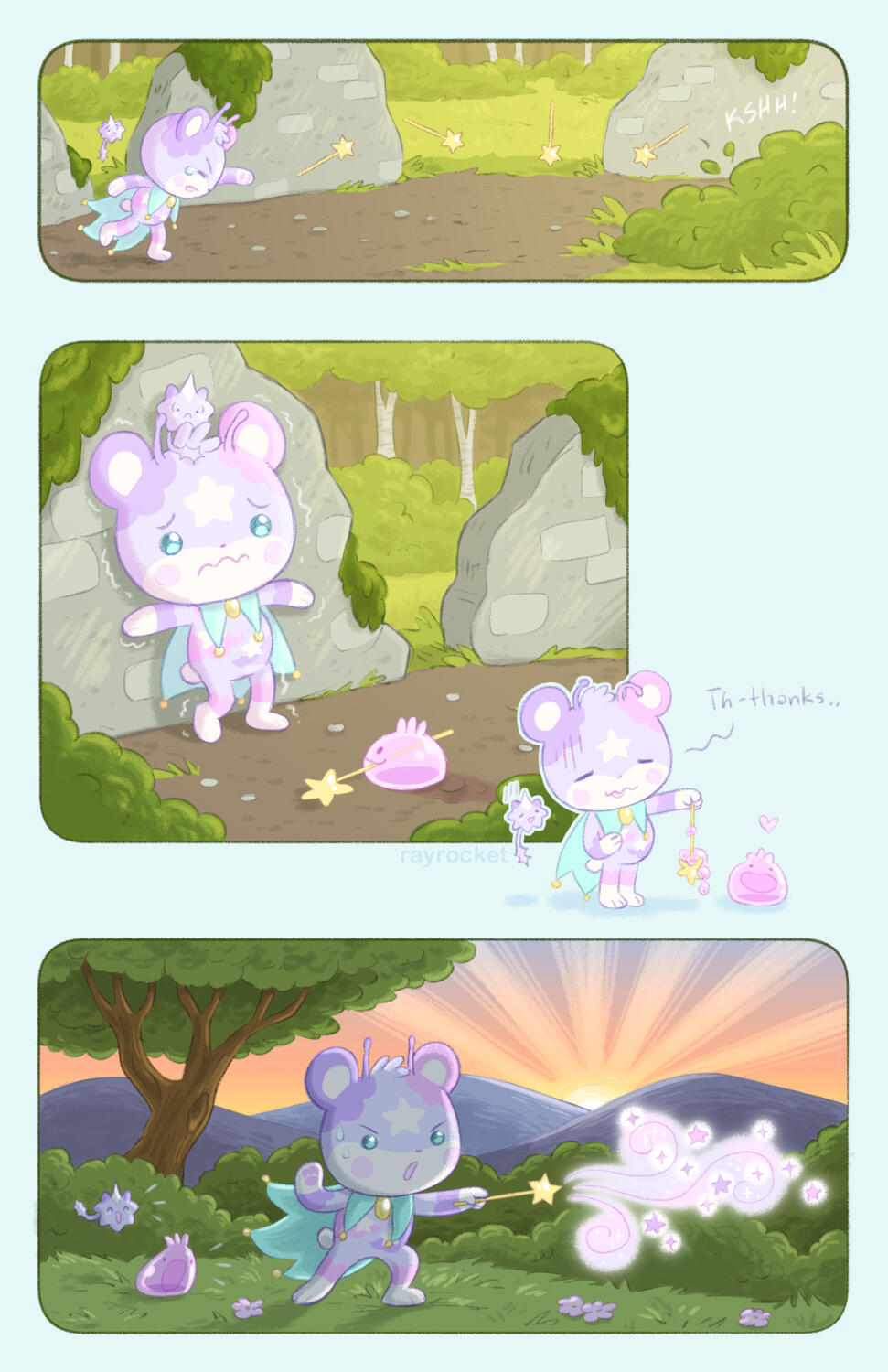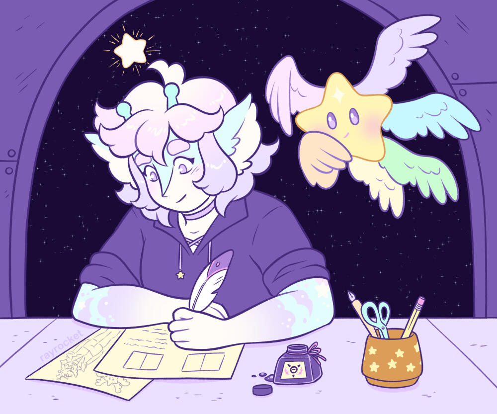 Hi, I'm Ray! I'm a cartoonist and I play ARPGs as a hobby. I'm currently active in Pouflons, Somnivores, Baobears, CupidCats, and Celestial Seas. On this page you'll find a collection of my favorite pieces! If you'd like to see more I post TONS of art from these games along with commentary on my Patreon every month!